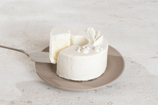 国産米粉100%使用したシフォン生地に、可能な限り甘さを抑えた豆乳クリームでデコレーション。